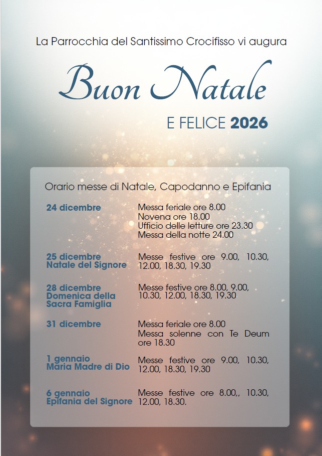 Nella locandina gli orari delle messe in questo tempo di festività.