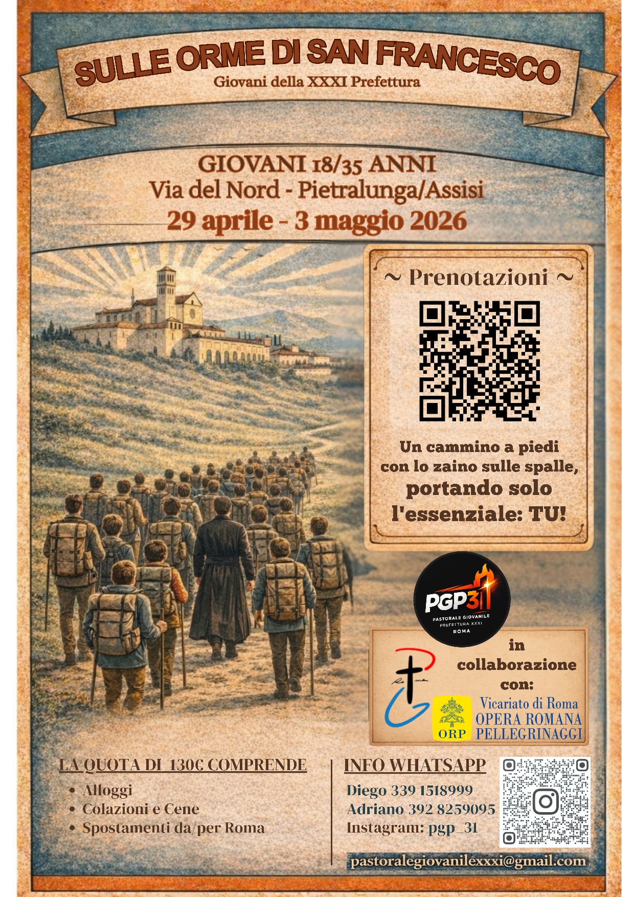 Pellegrinaggio per tutti i giovani della XXXI Prefettura: Dal 29 aprile al 3 maggio 2026 per giovani dai 18 ai 35 anni.